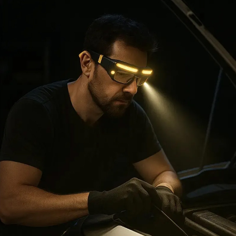 Meet the Esslyn FluxLite Glasses — the first-ever eyewear-mounted lighting system that makes every old flashlight instantly obsolete.